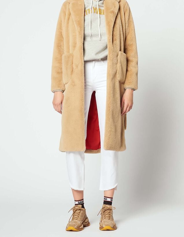 Well Wreapped Herrlicher Wintermantel Tabby Fake Fur In Camel