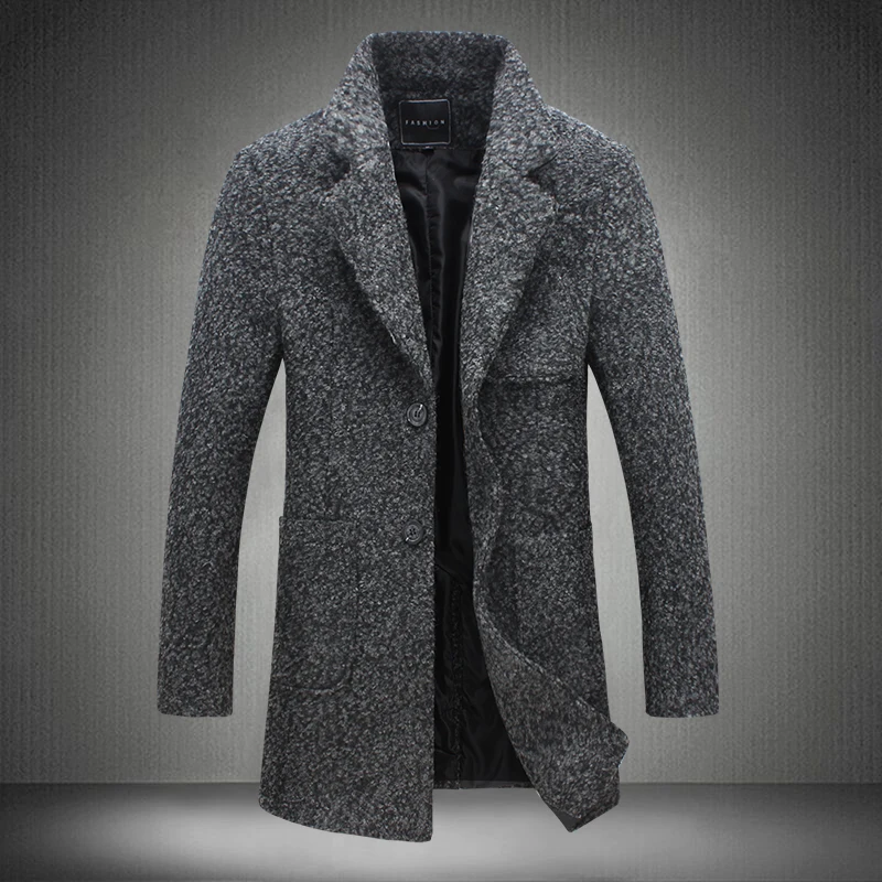 2018 Winter Herren Mantel Einreiher Graben Mantel Dicke Wolle Große