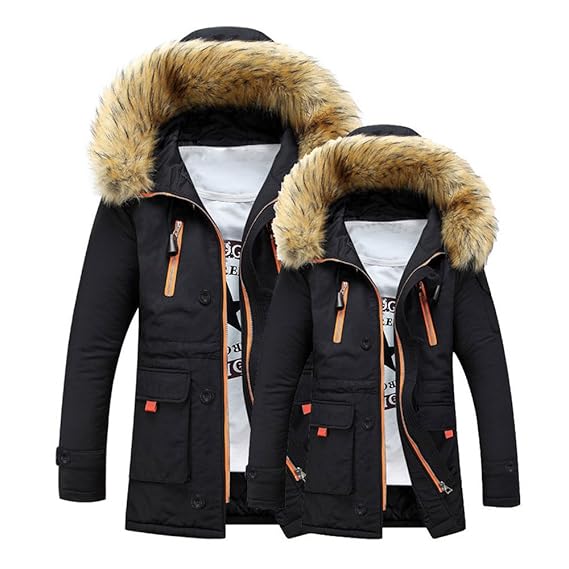 Ghope Herren Verdickte Parka Futter Abnehmbare Fellkapuze Warm
