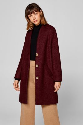 Esprit Bouclé Mantel Aus Woll Mix Mit Kapuze Garnet Red