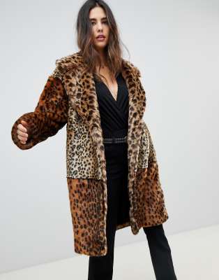 Find Mantel Damen Mit Kunstfell Und Leoparden Print Amazonde