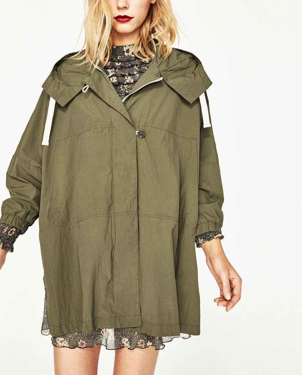 Khaki Relaxed With New Fit Green Coat Zara Raincoat Parka Jacket