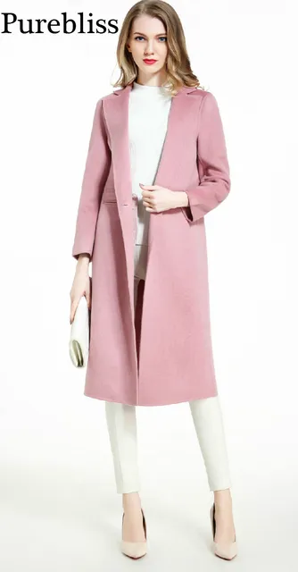 Purebliss 100 Kaschmir Winter Wolle Langen Wollmäntel Frauen Rosa