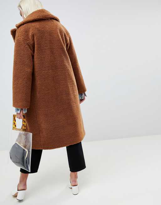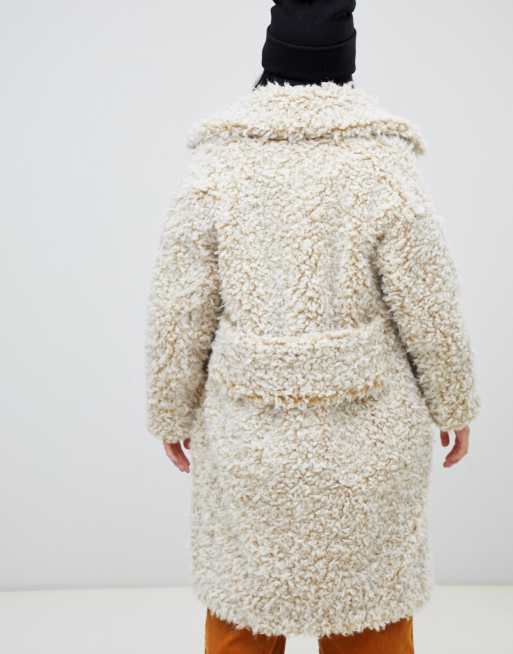 Monki Monki Zweireihiger Teddy Mantel In Gebrochenem Weiß
