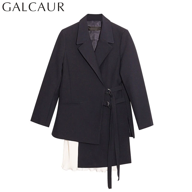 Galcaur Frauen Feste Blaue Farbe Gürtel Mantel 2 Zwei Stück Set 2017