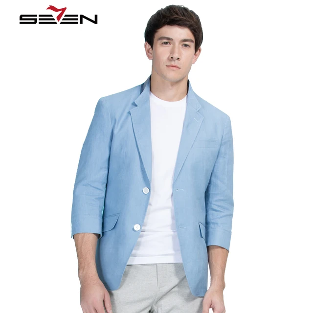 Seven7 Mode Herren Blazer Feste Blaue Farbe Casual Leinen Blazer