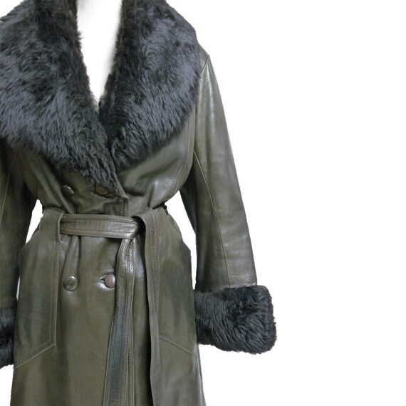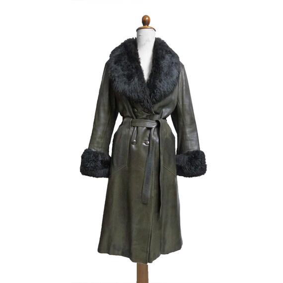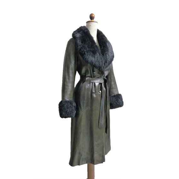 Vintage Leather Coat 1970s Mantel Manteau Fake Fur 70s Trench Etsy
