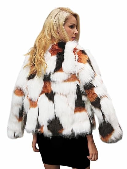 Simplee Apparel Damen Mantel Winter Elegant Warm Multicolor Faux Fur