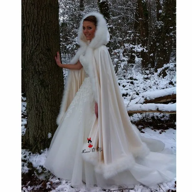 Rmdress Brautkleider Warm Winter Pelz Jacke Mit Kapuze Cape Hochzeit
