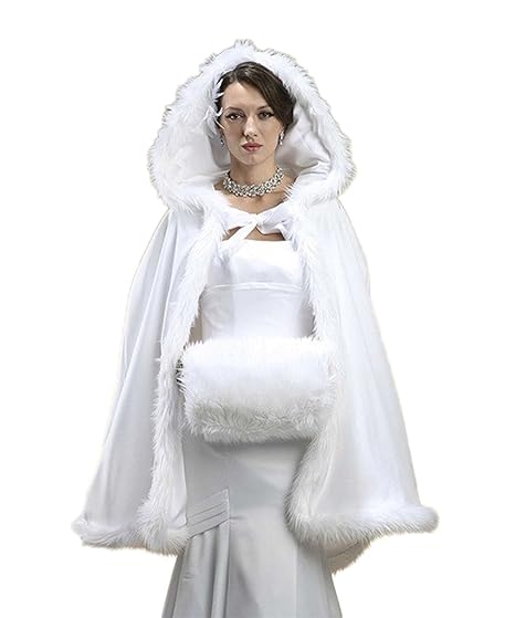 Shinegown Weiss Damen Umhang Hochzeit Mantel Mit Kapuze Winter Lange