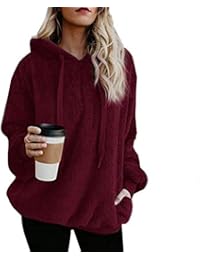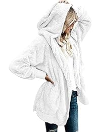 Wusiky Damenmädchen Teddy Mantel Sherpa Mantel Einfarbig Kapuzen