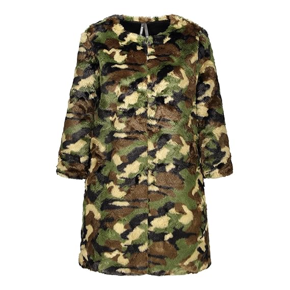 H4f Damen Teddy Fell Mantel Jacke Mit Camouflage Muster Farbe Grün