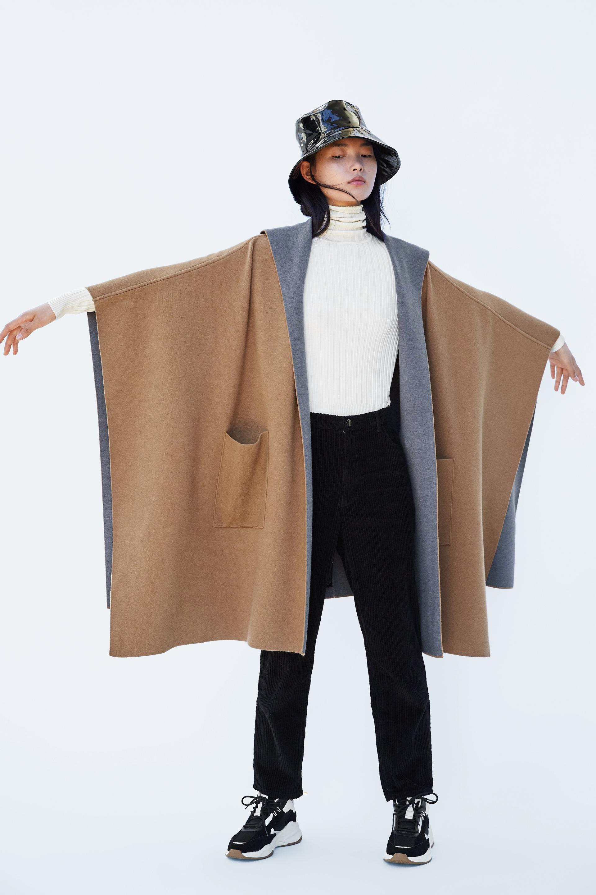 Zara Fashion Frauen Langer Hülsen Wasserfall Kap Italienischer