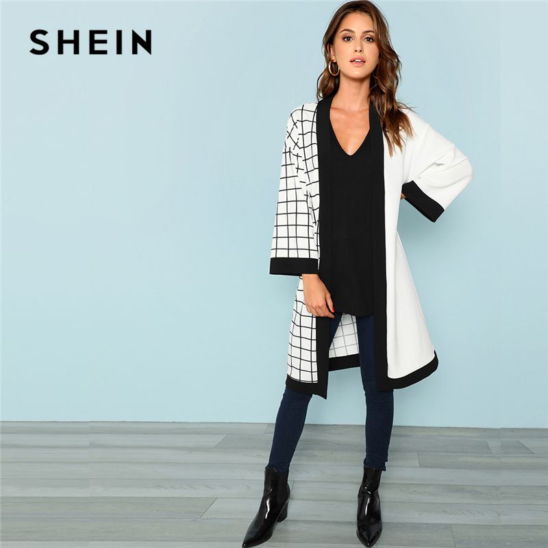 Shein Multicolor Highstreet Büro Dame Cut Und Grid Print Langarm Minimalistischen Mantel 2018 Herbst Frauen Oberbekleidung Kleidung Nähen