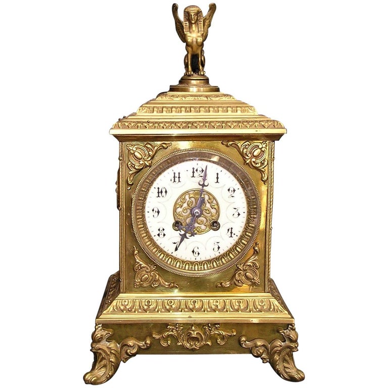 French Empire Style Bronze Mantel Clock For Sale At 1stdibs
