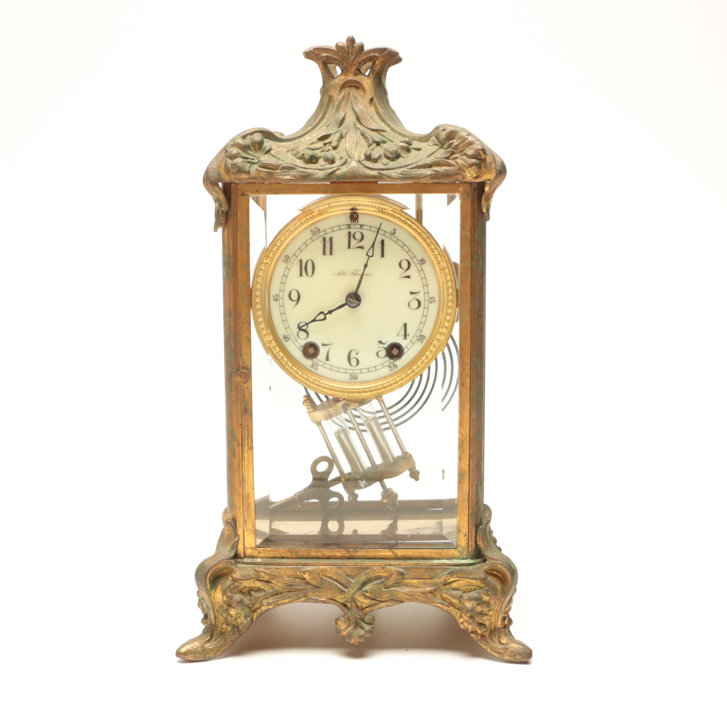Antique Seth Thomas Brass Finished Empire Mantel Clock Ebth