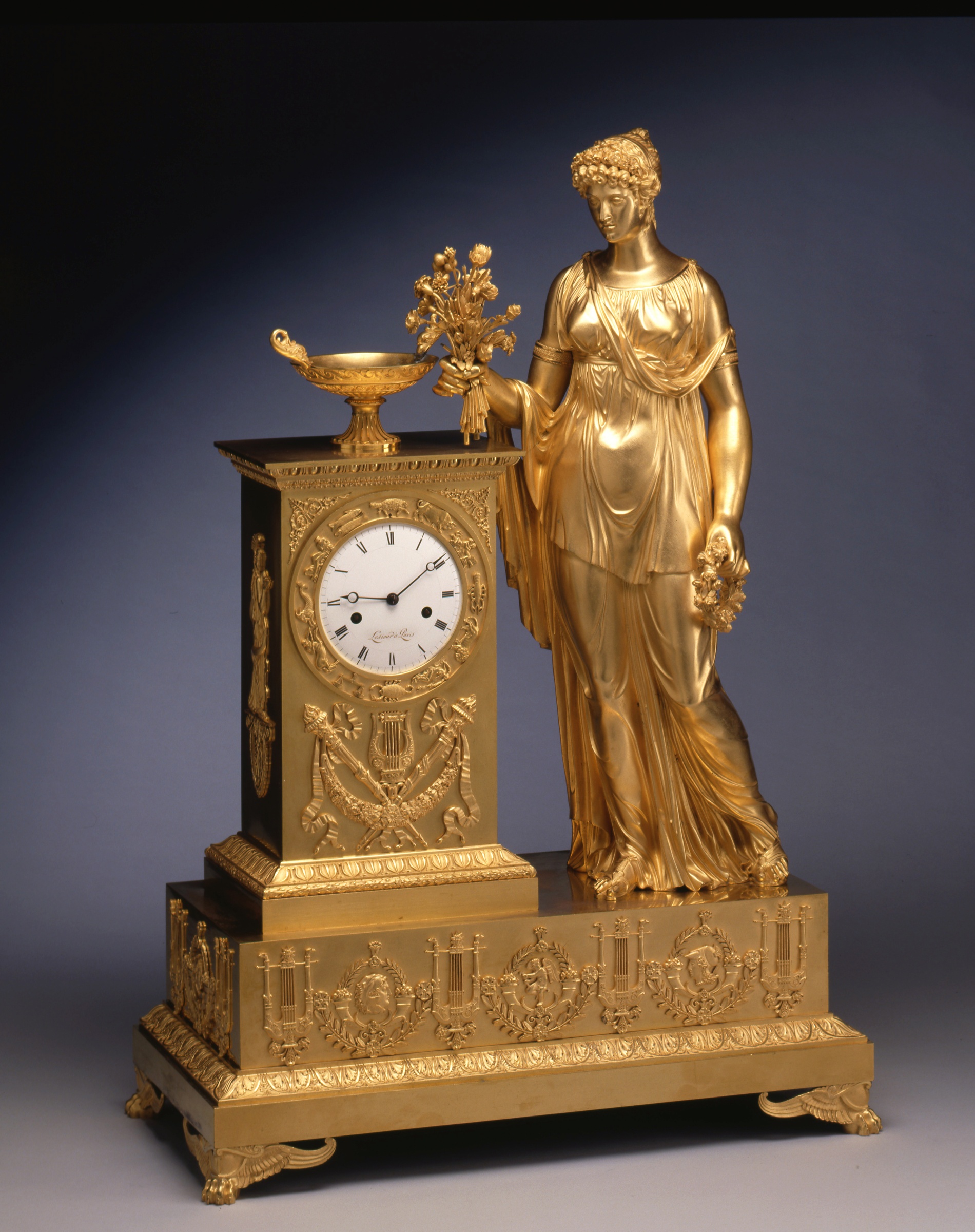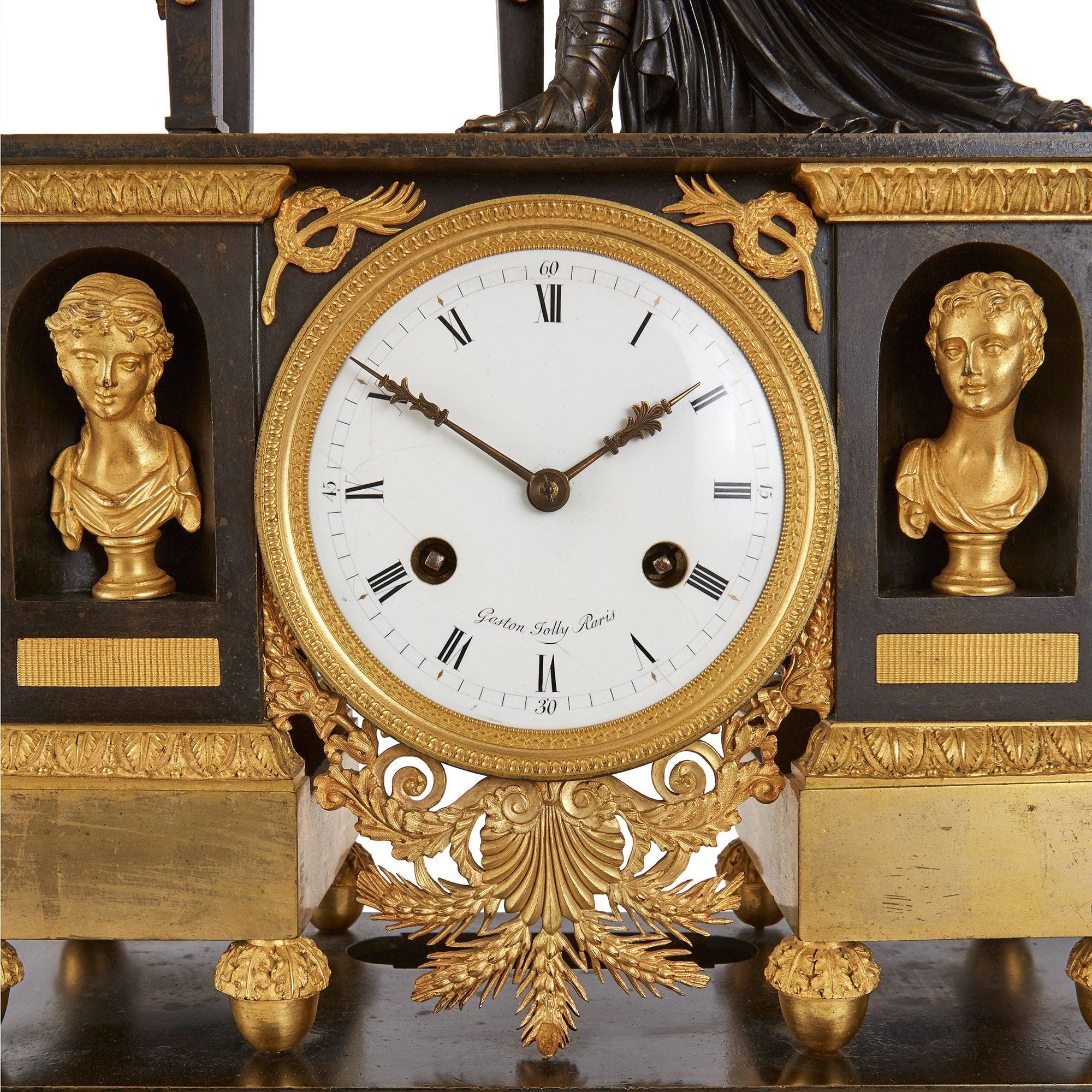 Empire Gilt And Patinated Bronze Large Figural Mantel Clock Doyle