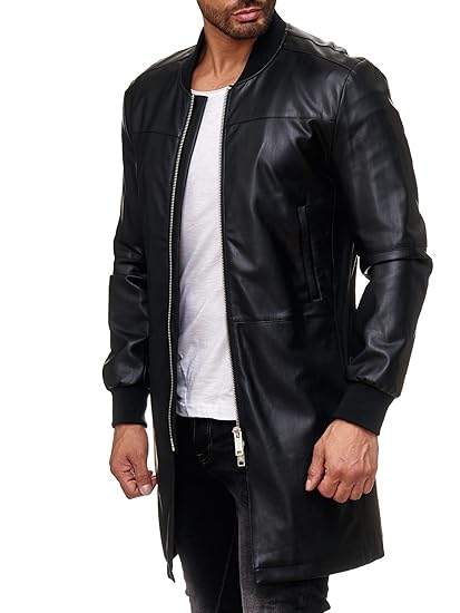 Redbridge By Cipo Baxx Herren Lederjacke Oversize Lange Kunstleder