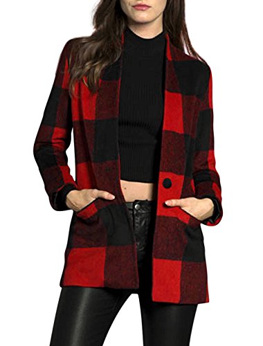 Karierte Mode Blazer Mantel Herbst Rot Schwarz Clothes