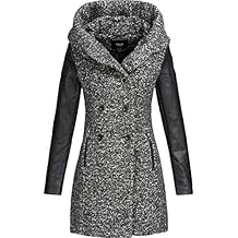 Billig Only Damen Wollmantel Kapuze 2 Taschen Druckknopfleiste
