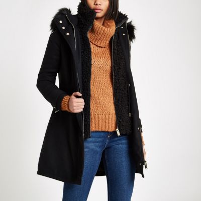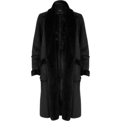 River Island Schwarzer Mantel Aus Lammfellimitat Mit Borg Futter