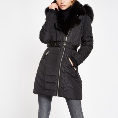 Damen New Look New Look Mantel Mit Lammfellimitat Schwarz Gnayoh