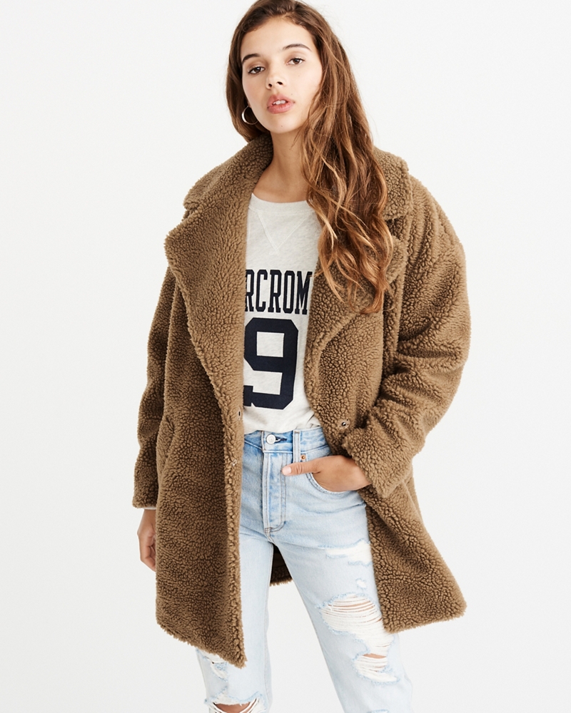 Womens Mantel Aus Teddyplüsch Womens Coats Jackets