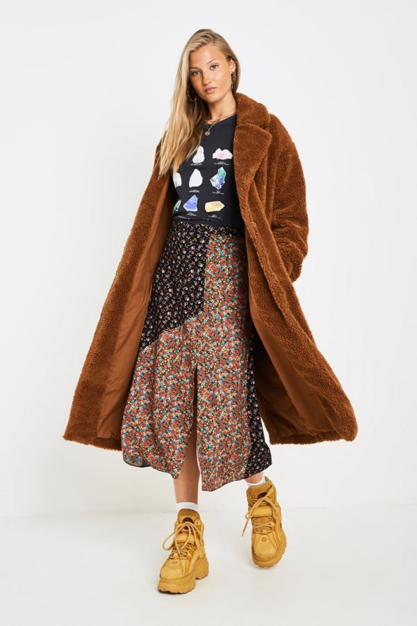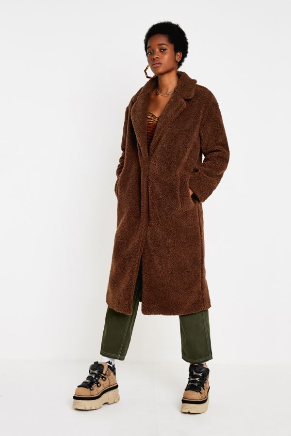 Urban Outfitters Langer Mantel Aus Teddyplüsch In Braun Urban