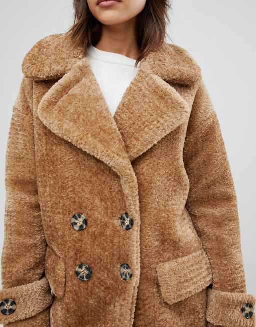 Warehouse Premium Double Breasted Oversized Teddy Fur Coat Things
