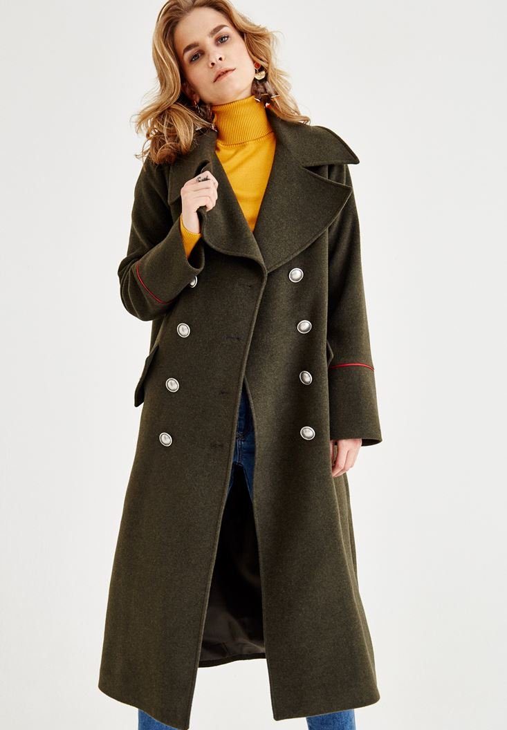 Armee Grün Schlitz Taschen Doppelreiher Langarm Wollmantel