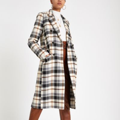 River Island River Island Karierter Wollmantel In Braun Uhs69c7z