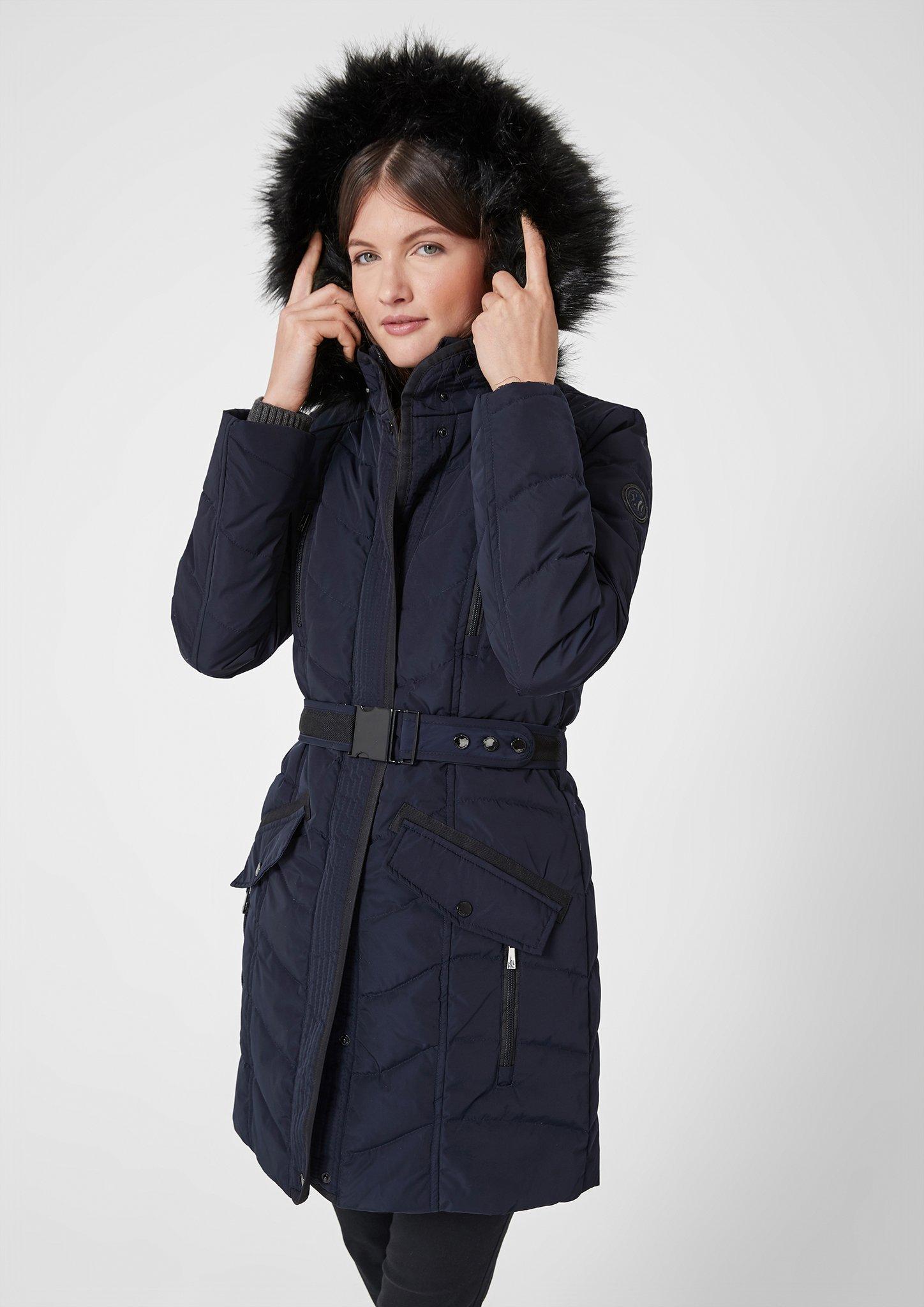 Damen Soliver Damen Mantel Mit Fellkapuze 22691