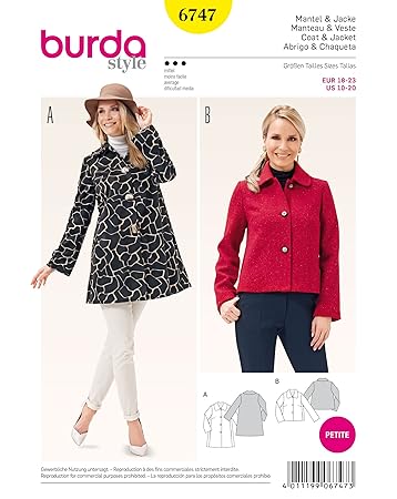 Burda Schnittmuster 6747 Misses Coat Und Jacke Weiß Amazonde