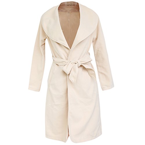 Damen Revers Langer Mantel Trenchcoat Mit Wasserfallschnitt