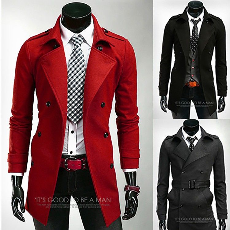 Großhandel Herren Mäntel New Fashion Rot Schwarz Dunkelgrau Lange