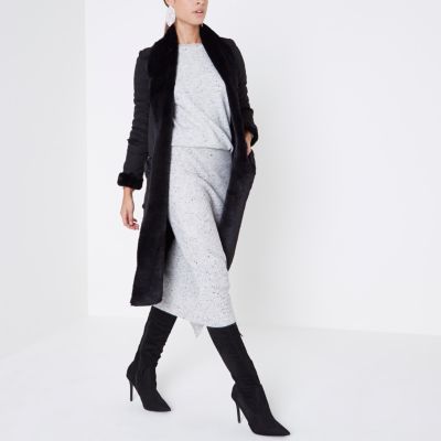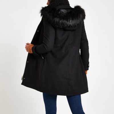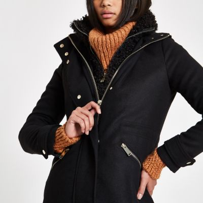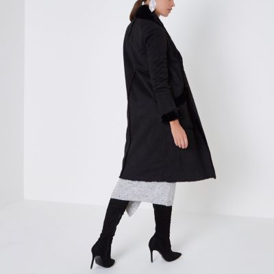 River Island Schwarzer Mantel Aus Lammfellimitat Mit Borg Futter