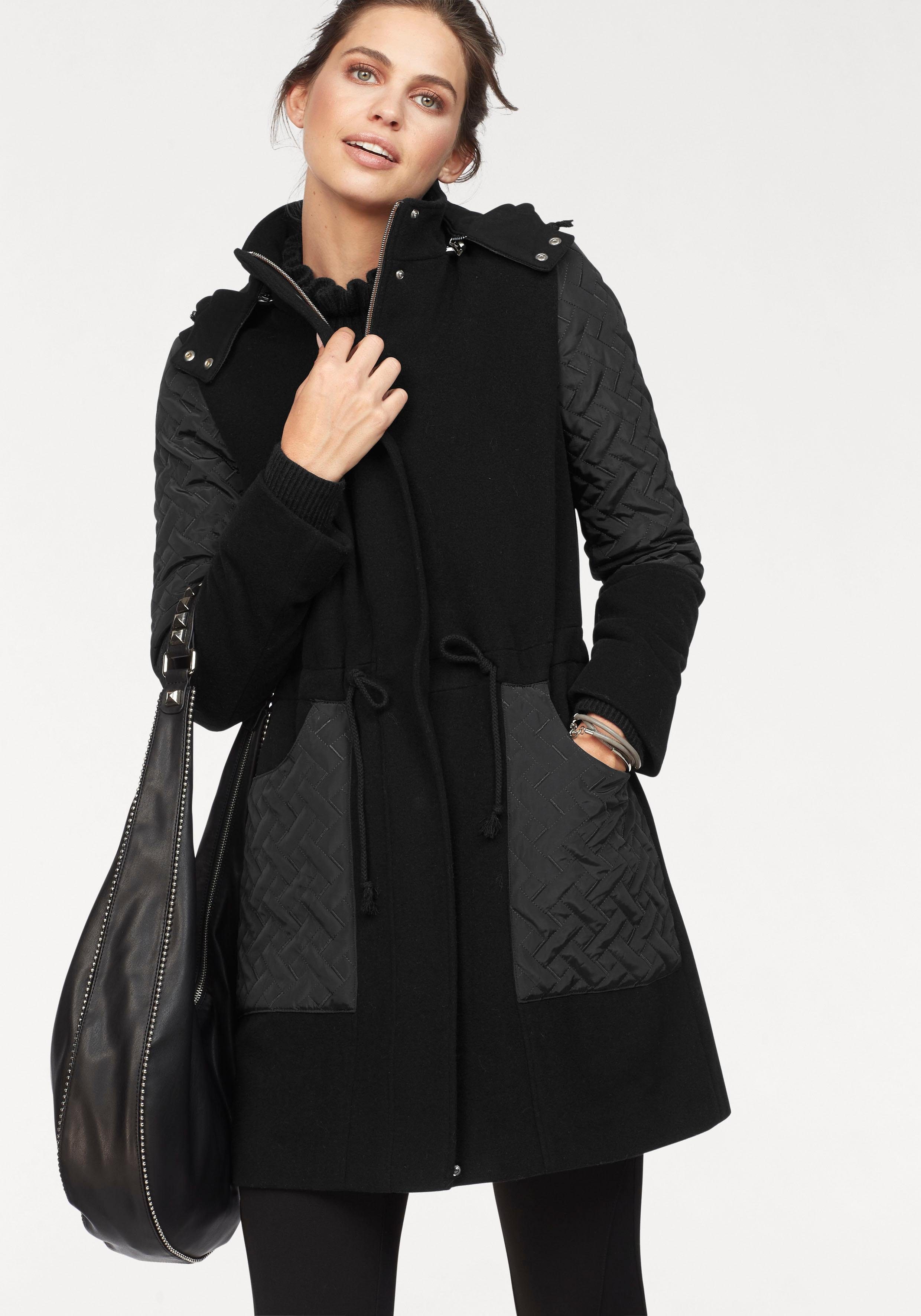 Damen Mantel Mit Lederärmel Adagio Damen Mantel Mit Kapuze