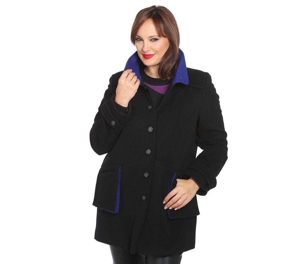 Via Milano Plus Wollmantel Stehkragen Knopfleiste 2 Fronttaschen