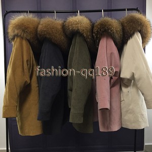 Jayloucy Damen Winter Jacke Mantel Kapuze Echtfell Waschbär Jc5031