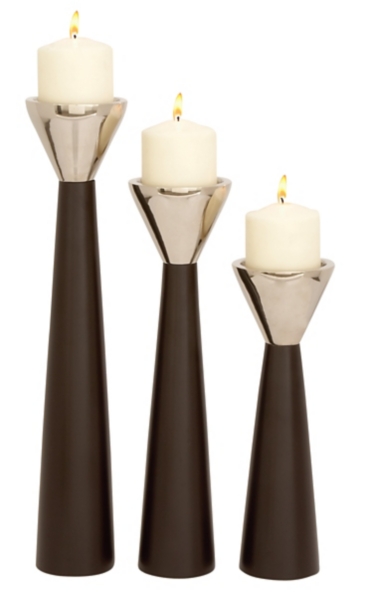 Mango Wood And Aluminum Candle Holders Set Of 3