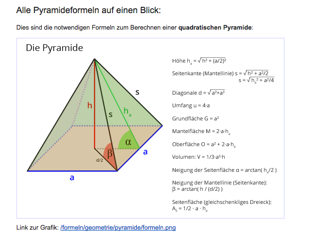 Formelübersicht Pyramide Matheretter